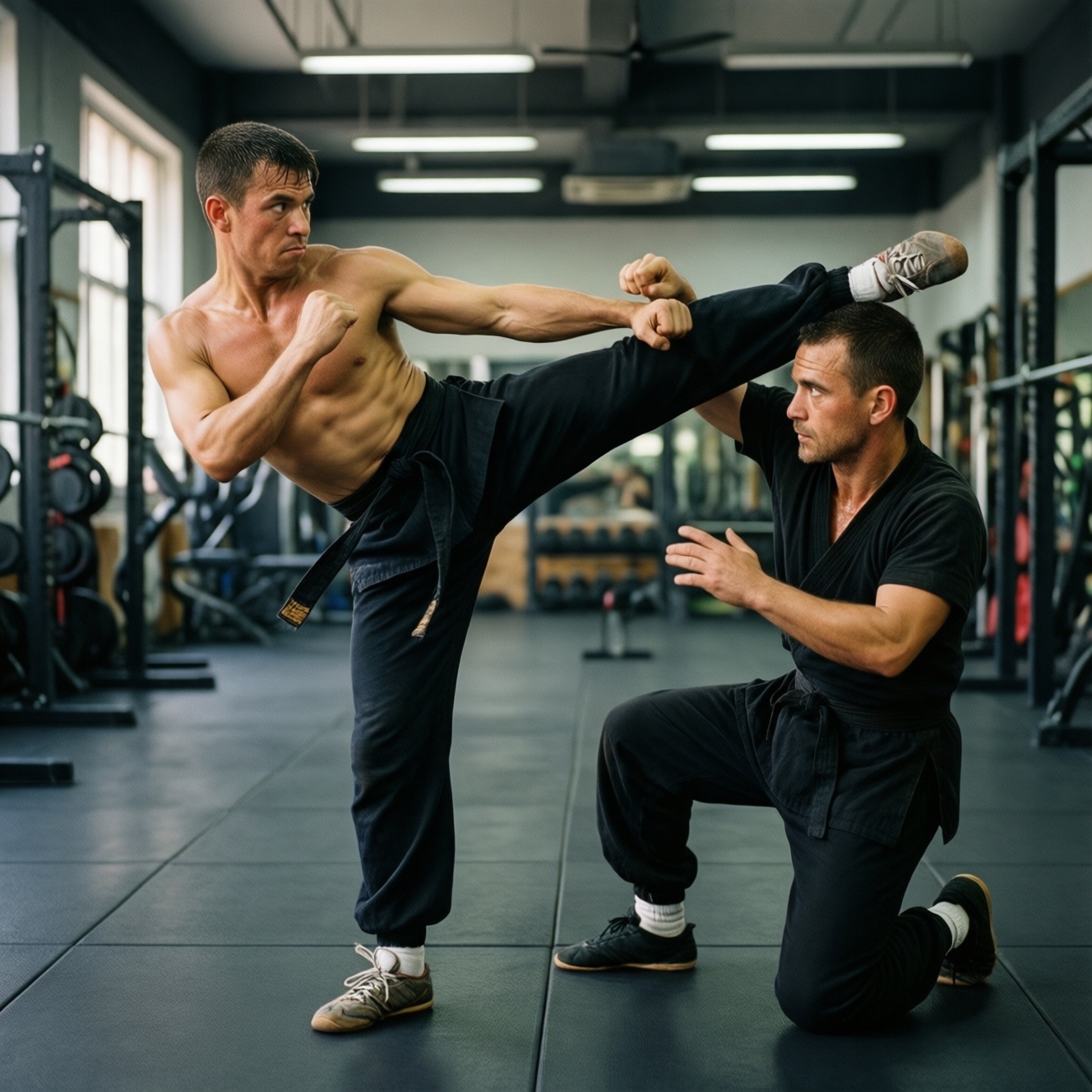 Перед основной тренировкой цель гибкости тоже другая: не "углубиться любой ценой", а подготовить ткани и нервную систему. Лучше работают короткие динамичные связки, активные подъёмы и мягкая мобилизация, которые не снижают скорость и не делают ноги "ватными". А вот длительные статические удержания имеет смысл оставлять на отдельную сессию или на конец дня - когда не нужно сразу выходить на ударную серию или в плотную борьбу.